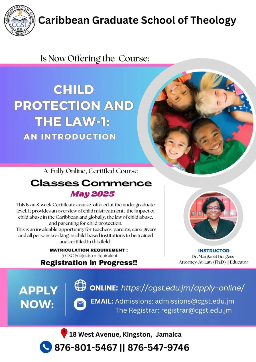 This is an eight-week certificate course that provides critical information on various forms of child abuse, the incidence, indications and impact of child abuse globally and in the Caribbean, the Law on child abuse, and guidelines on parenting for child Protect
